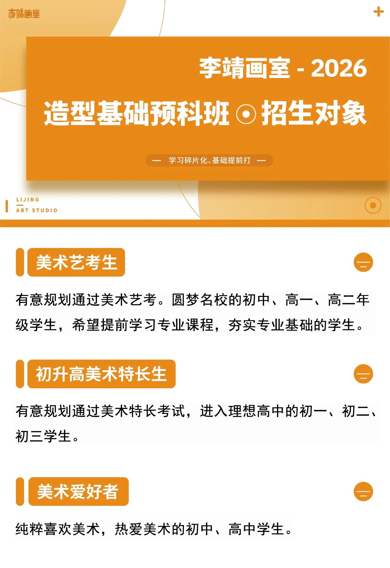 【李靖画室2026造型基础预科班招生简章】——学习碎片化,基础提前打!