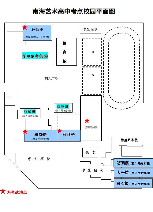 (3)因为交通的原因,考点考前一天不提供进入考点看考场服务。考生可以通过南海艺术高中官微(fsnhyg)或考试当天在广场宣传栏了解考场分布情况;